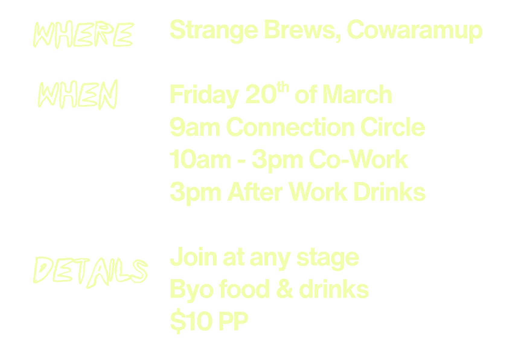 Join us for a relaxed co-working day designed for creatives, freelancers, and small business owners who want to work alongside others in an industrial space & inspiring environment.